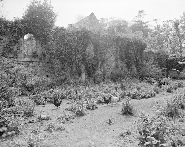 Mur sud de l'ancienne chapelle Saint-Nicolas formant aujourd'hui clôture au nord de la cour. Vue prise du nord. (1983)Immatriculation