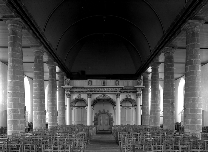 Cleder, église paroissiale Saint-Pierre : nef : vers l'est, état en 1983Immatriculation