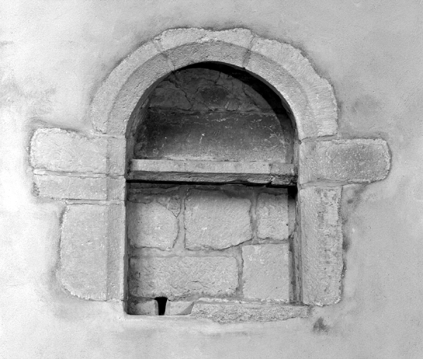 Eglise abbatiale ; vue intérieure : niche crédence dans le mur nord de la nefImmatriculation