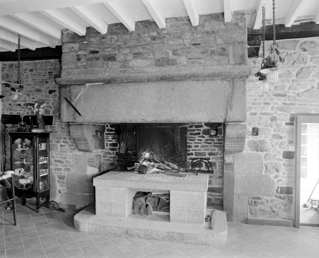 Logis, salle du rez-de-chaussée, cheminée, vue générale.Immatriculation