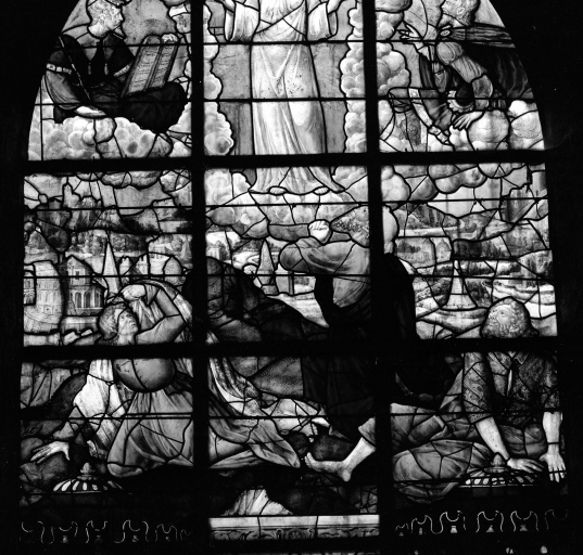 Verrière 4 : Transfiguration, vue de détail du registre médian.Immatriculation