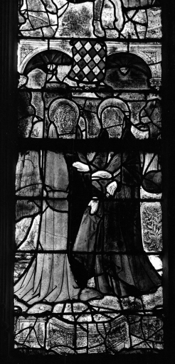Verrière 1 : Vie de la Vierge, panneau c1, vue de détail.Immatriculation