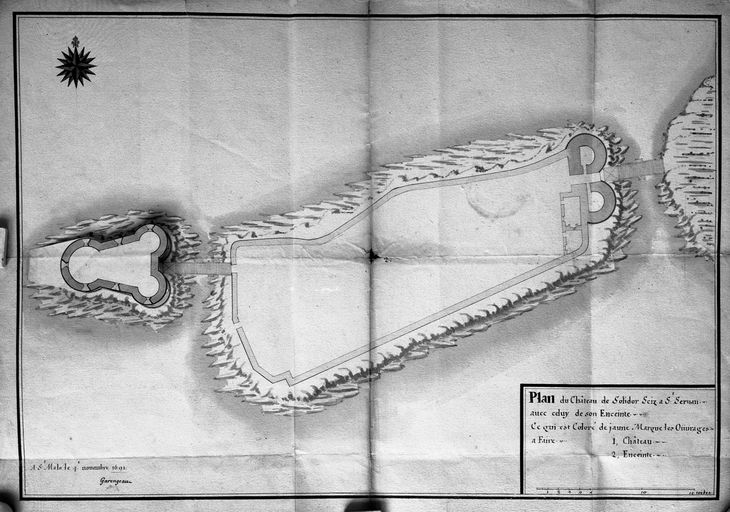 Plan du "château de Solidor" avec son enceinte à châtelet, fait à Saint-Malo par l'ingénieur Garengeau le 4 novembre 1691Immatriculation