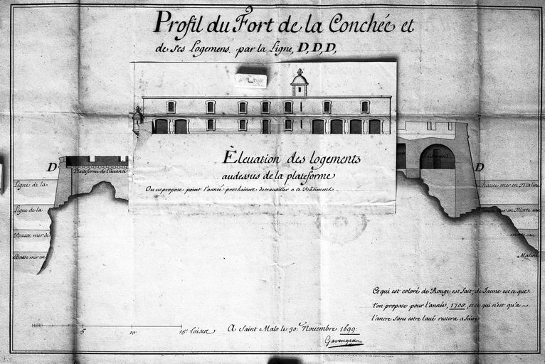 Profil du fort de la Conchée et de ses logements par la ligne D, D , D, fait à Saint-Malo par Garangeau le 30 novembre 1699Immatriculation