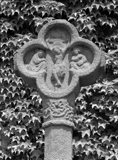 Croix monumentale, vue de détail.Immatriculation