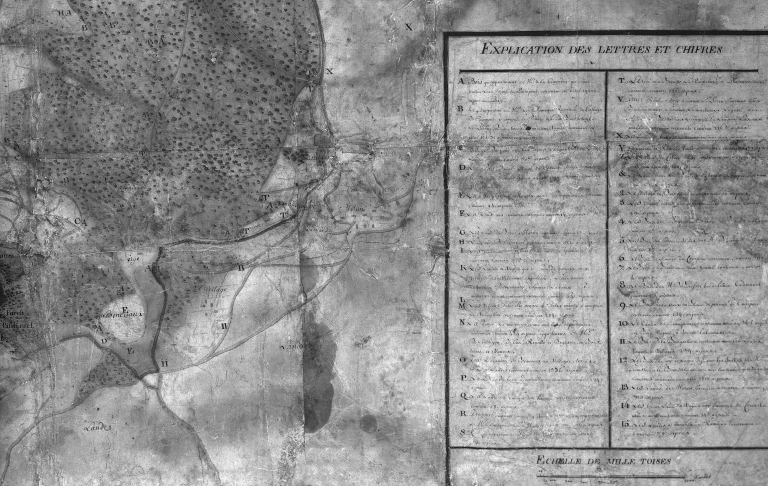 Plan de la forêt en 1727 ; légendeImmatriculation