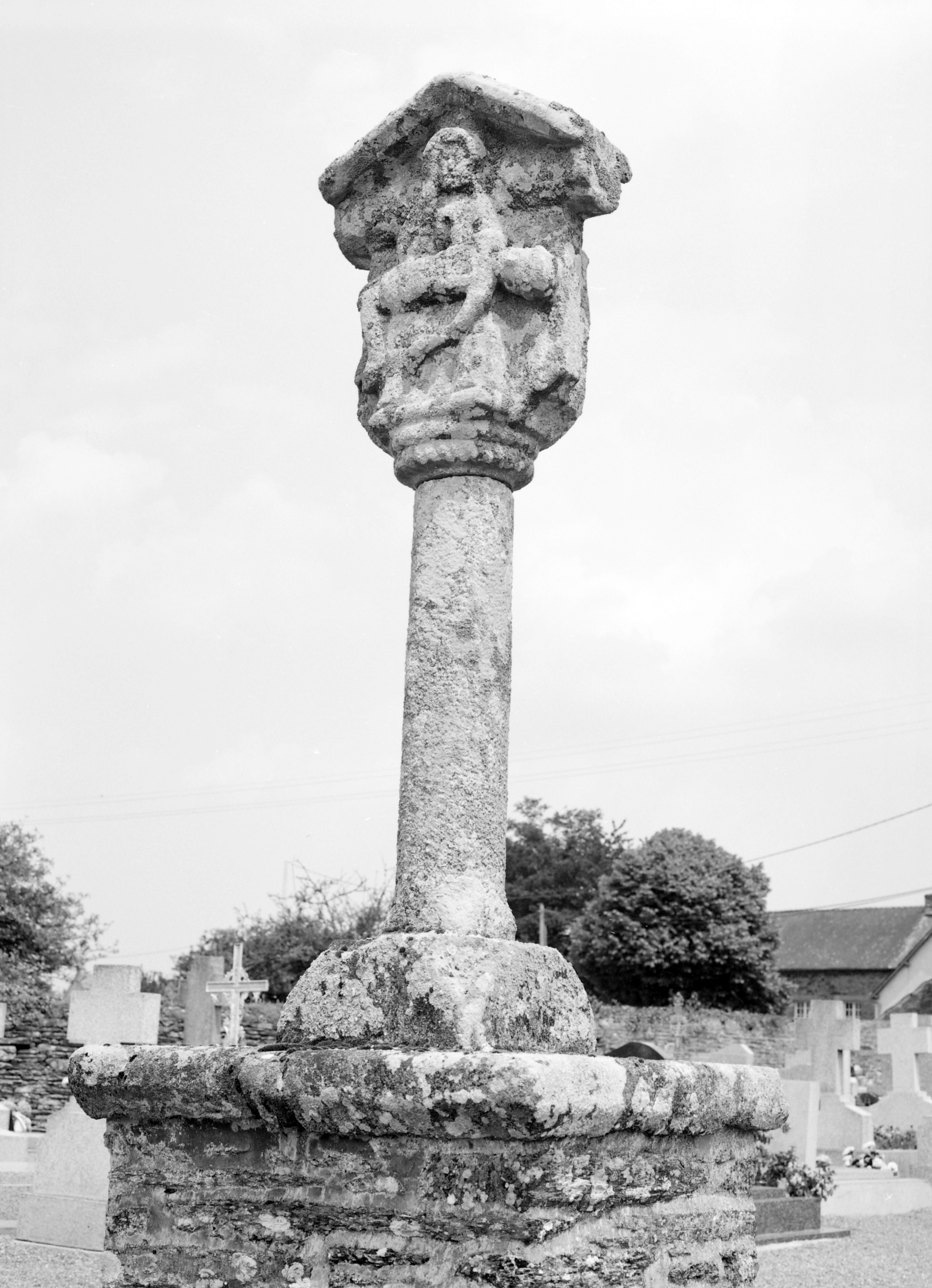 Croix de cimetière : face portant la Vierge de pitié, vue rapprochée (état en 1983)Immatriculation