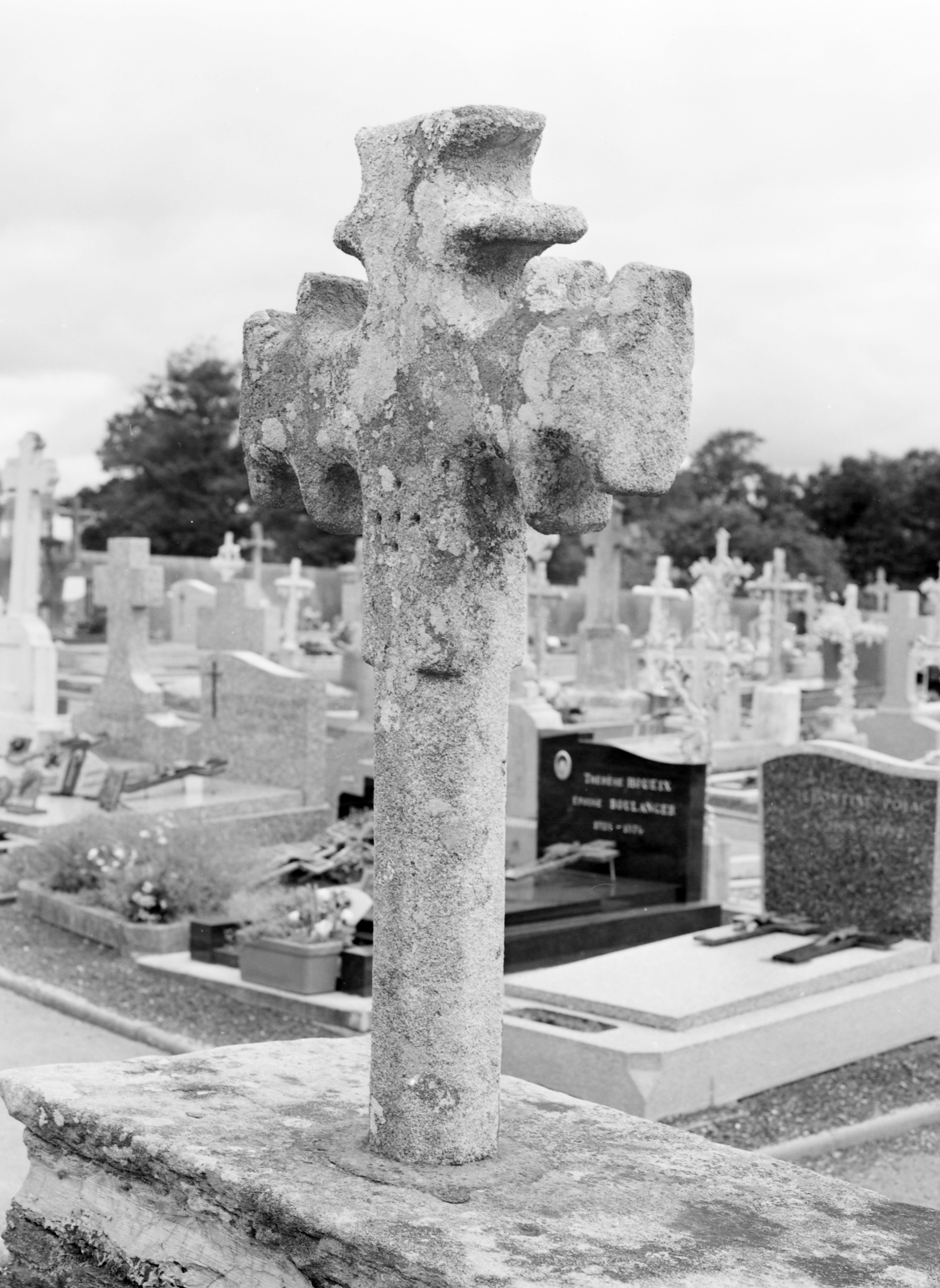 Croix de cimetière : vue de 3/4 (état en 2010)Immatriculation