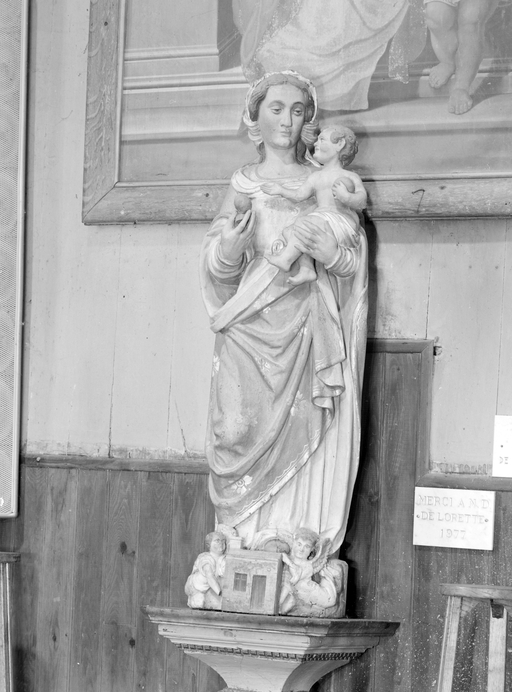 Statue (d'applique, petite nature) : Vierge à l'Enfant, dite Notre-Dame de Lorette, église paroissiale Notre-Dame-de-Lorette (Séglien),