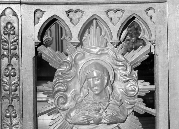 Table de communion, détail du portillon central.Immatriculation