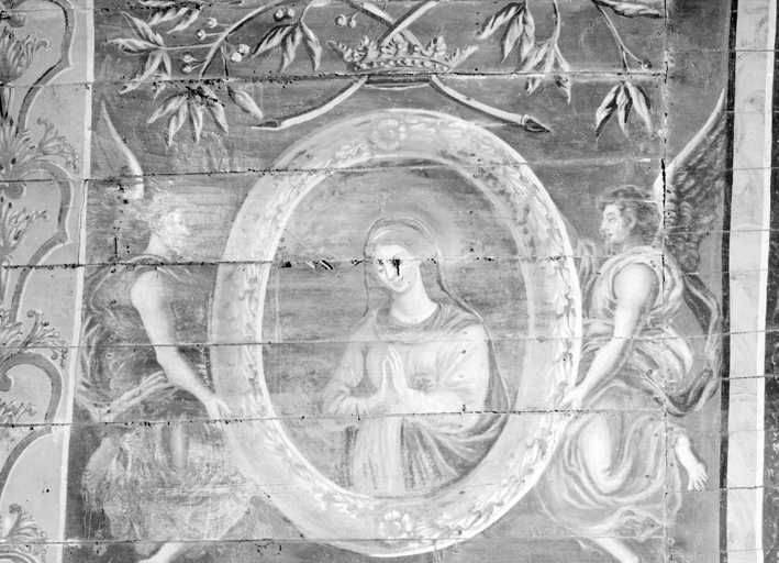 Peintures de plafond A, choeur nord, médaillon 46, Vierge.Immatriculation