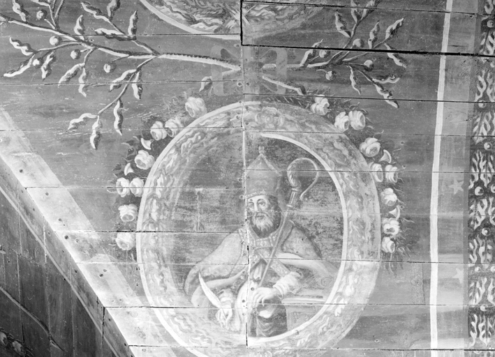 Ensemble de peintures de plafond A, croisée transept, médaillon 28 : saint Ambroise.Immatriculation