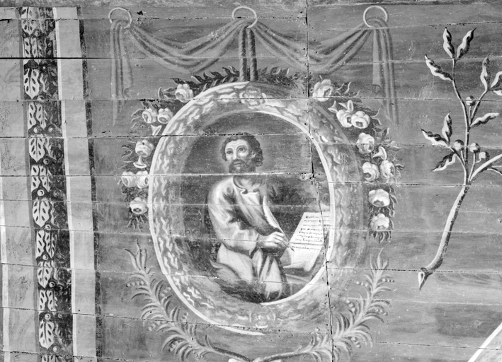 Ensemble de peintures de plafond A, croisée transept, médaillon 27 : saint Jean apôtre.Immatriculation
