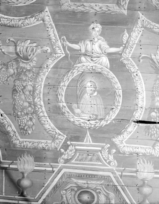 Ensemble de peintures de plafond A, nef nord, médaillon 16 : Luther allégorie prudence.Immatriculation
