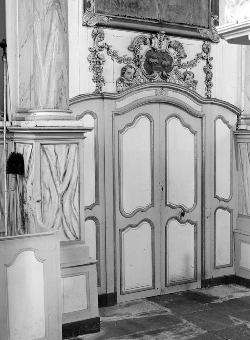 Maître-autel et retable, retable, détail porte de sacristie.Immatriculation