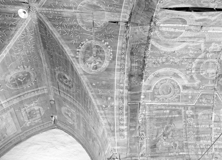 Ensemble de peintures de plafond A, choeur et bras sud, vue générale.Immatriculation