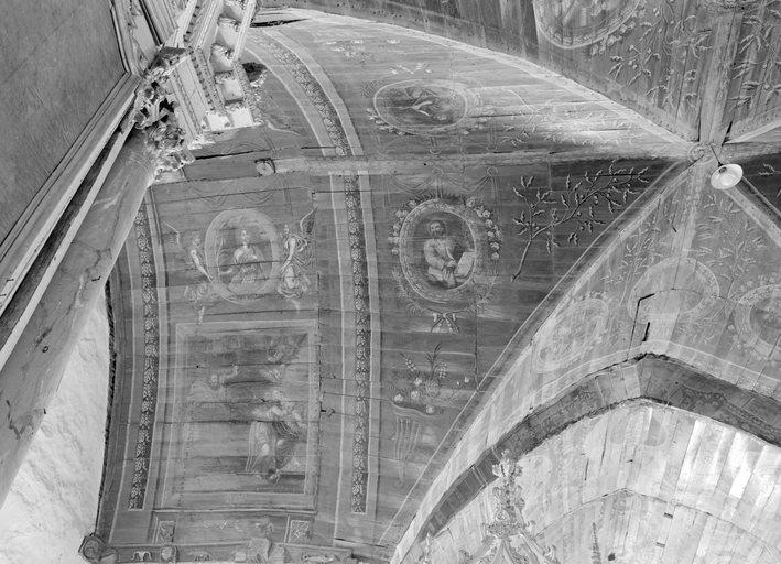 Ensemble de peintures de plafond A, bras sud, face ouest : vue générale.Immatriculation