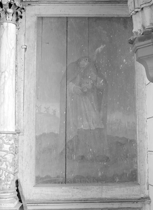Autel et retable n°2, lambris à droite : saint Denis.Immatriculation
