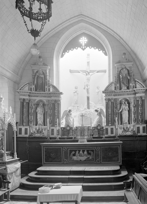 Autel, retable, tabernacle (maître-autel, autel tombeau, retable architecturé, tabernacle à ailes), église paroissiale Saint-Pierre Saint-Paul (Kergrist),