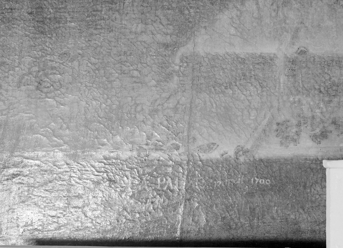 Peinture sur toile, détail : date et signature.Immatriculation