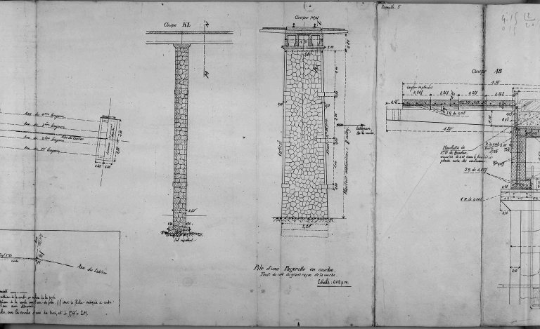 Ligne Saint-Brieuc à Paimpol et Tréguier : pile d'une passerelle en courbe, coupes KL et MN.Immatriculation