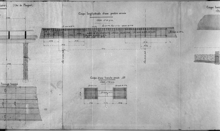 Ligne Tréguier - Lannion : passerelle sur la côte de Plouguiel, coupe longitudinale d'une poutre armée.Immatriculation