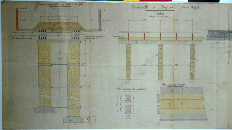Ligne Tréguier - Perros-Guirec : passerelle de la côte de Plouguiel : coupe et élévation.Immatriculation