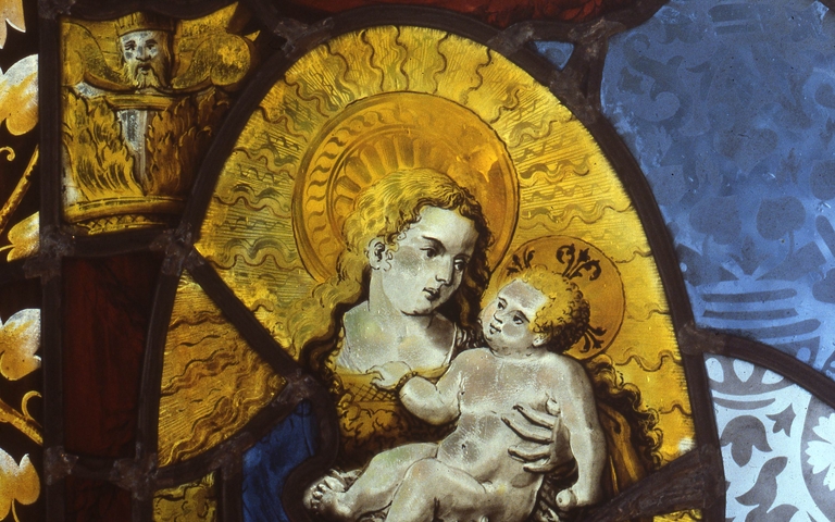 Lanvellec, Rosanbo : château, vitrail, détail de la Vierge à l'enfantImmatriculation