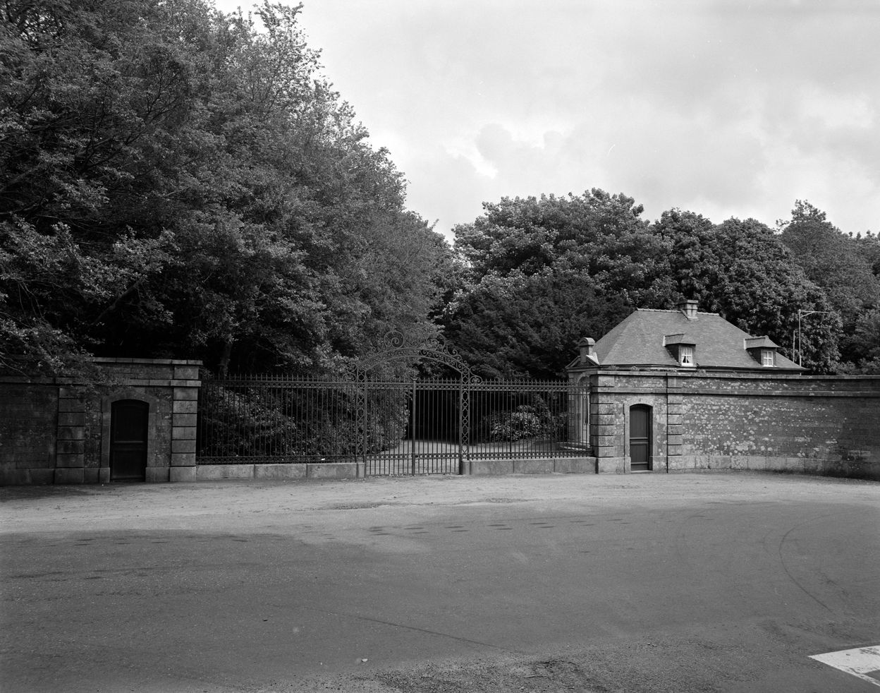 Entrée ouest, vue générale du portail et maison de gardeImmatriculation