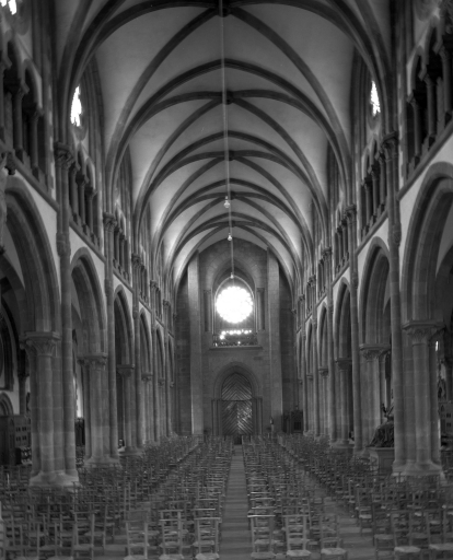 Douarnenez, église du Sacré-Coeur : vue intérieure vers l'ouest, état en 1984Immatriculation