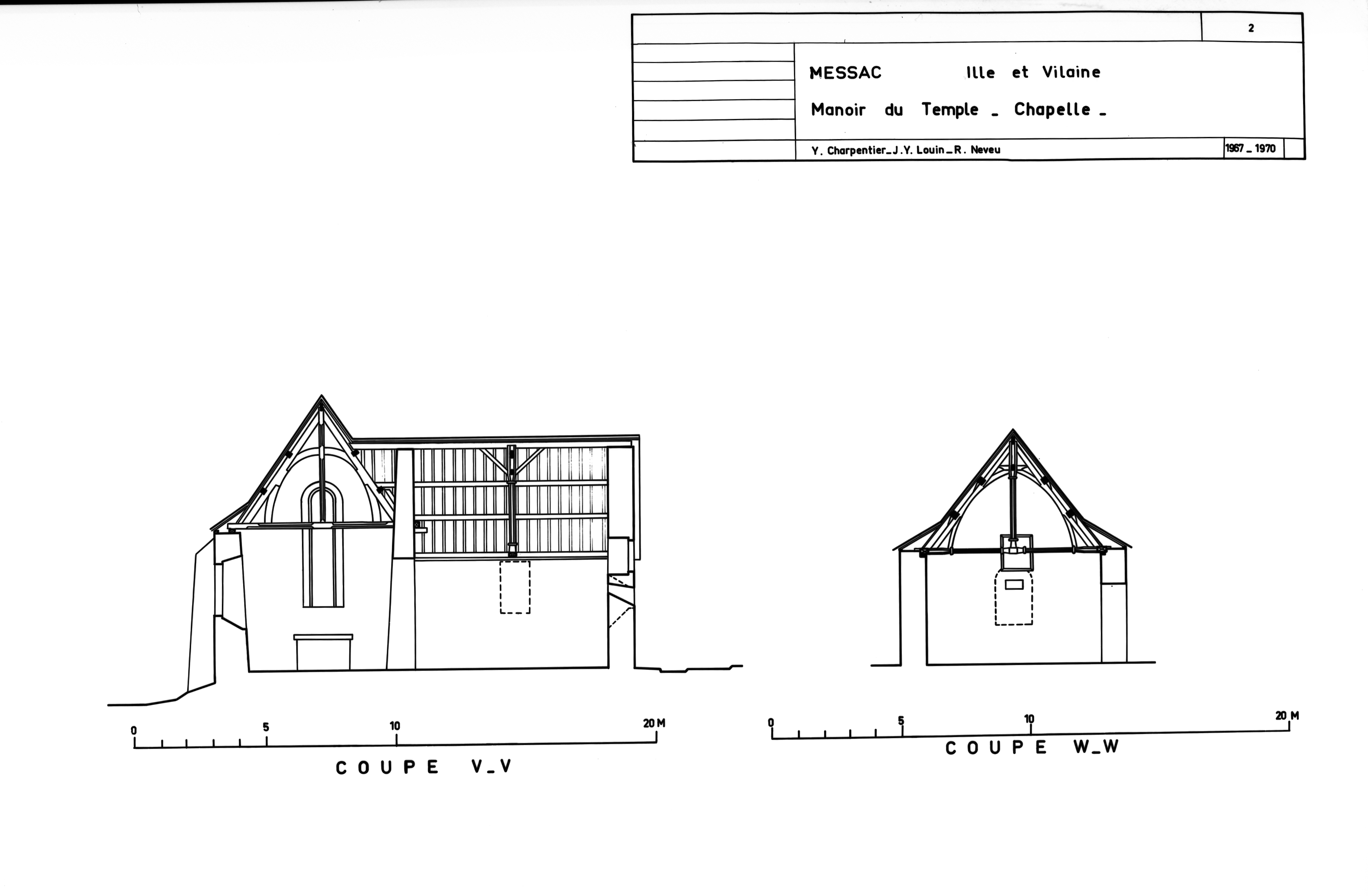 Chapelle, coupes nord-sud et est-ouest.Immatriculation
