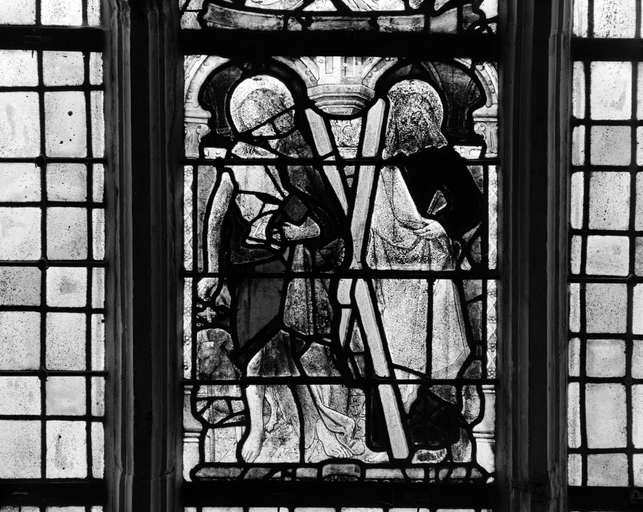 Verrière (verrière hagiographique) (baie 3), ancienne collégiale, actuellement église Sainte-Marie-Madeleine (Champeaux),