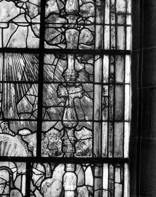 Verrière (verrière figurée) : Pentecôte (baie 8), ancienne collégiale, actuellement église Sainte-Marie-Madeleine (Champeaux),
