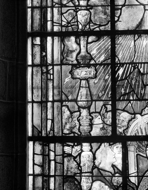 Verrière (verrière figurée) : Pentecôte (baie 8), ancienne collégiale, actuellement église Sainte-Marie-Madeleine (Champeaux),
