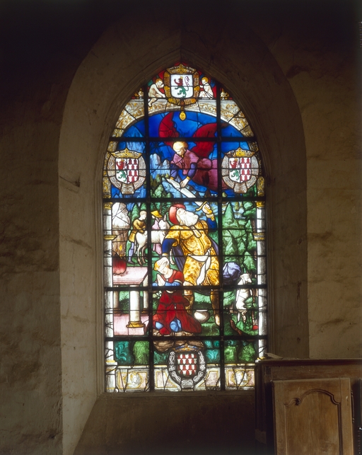 Verrière (verrière à personnages) : sacrifice d'abraham (baie 2), ancienne collégiale, actuellement église Sainte-Marie-Madeleine (Champeaux),