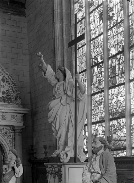 Statue, suspension eucharistique : la Foi, ancienne collégiale, actuellement église Sainte-Marie-Madeleine (Champeaux),
