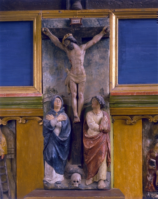 Autel et retable sud, panneau sculpté : Crucifixion.Immatriculation