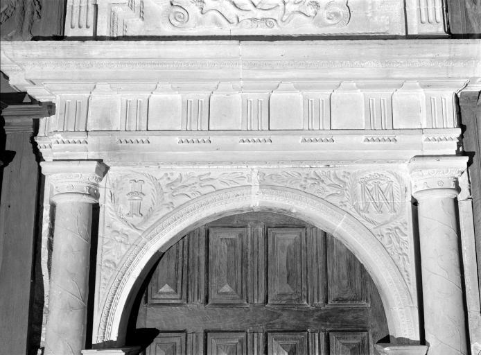 Porte sud de la sacristie, détail du premier entablement pris par dessous (frise sculptée)Immatriculation