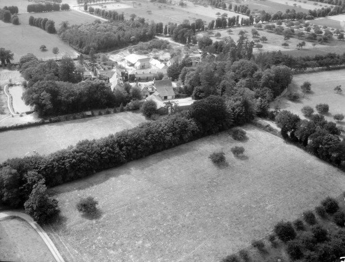 Vue aérienne des manoirs vers l'ouest.Immatriculation