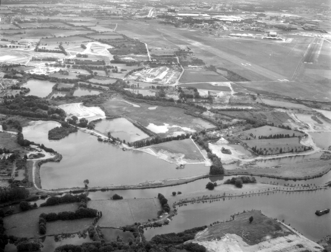 Commune, vue aérienne vers le nord, la Vilaine au premier plan, la Piblais au second plan.Immatriculation