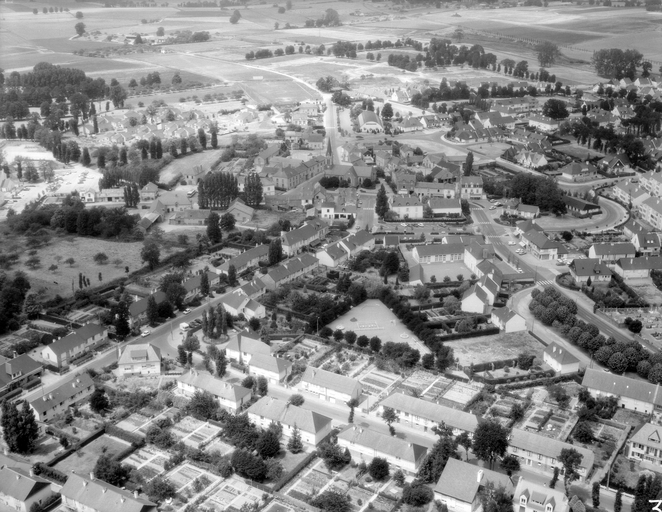 Le bourg, vue aérienne vers le nord.Immatriculation