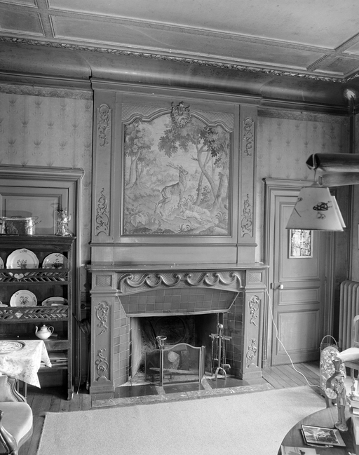 Vue générale de la cheminée de la salle à manger.Immatriculation