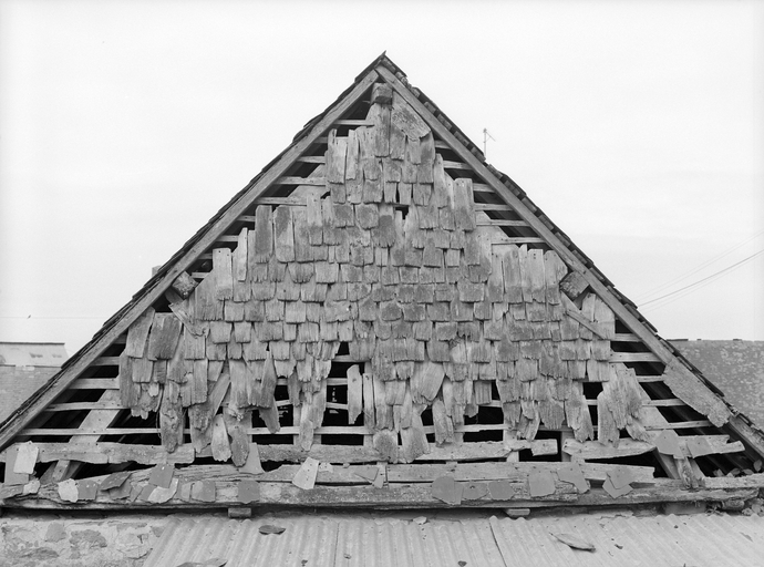 La Seurinais. Dépendance, détail du pignon.Immatriculation