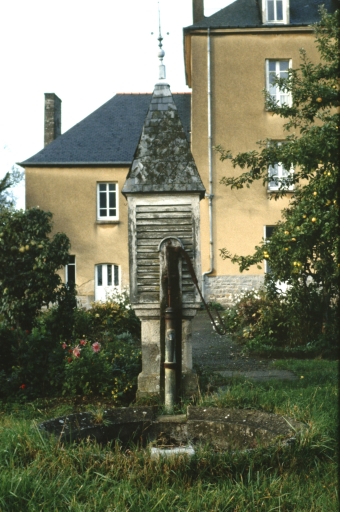 Fontaine et garde-manger dans le jardin, vue générale.Immatriculation