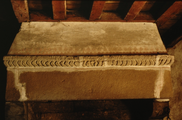 Cheminée de l'étage, linteau.Immatriculation