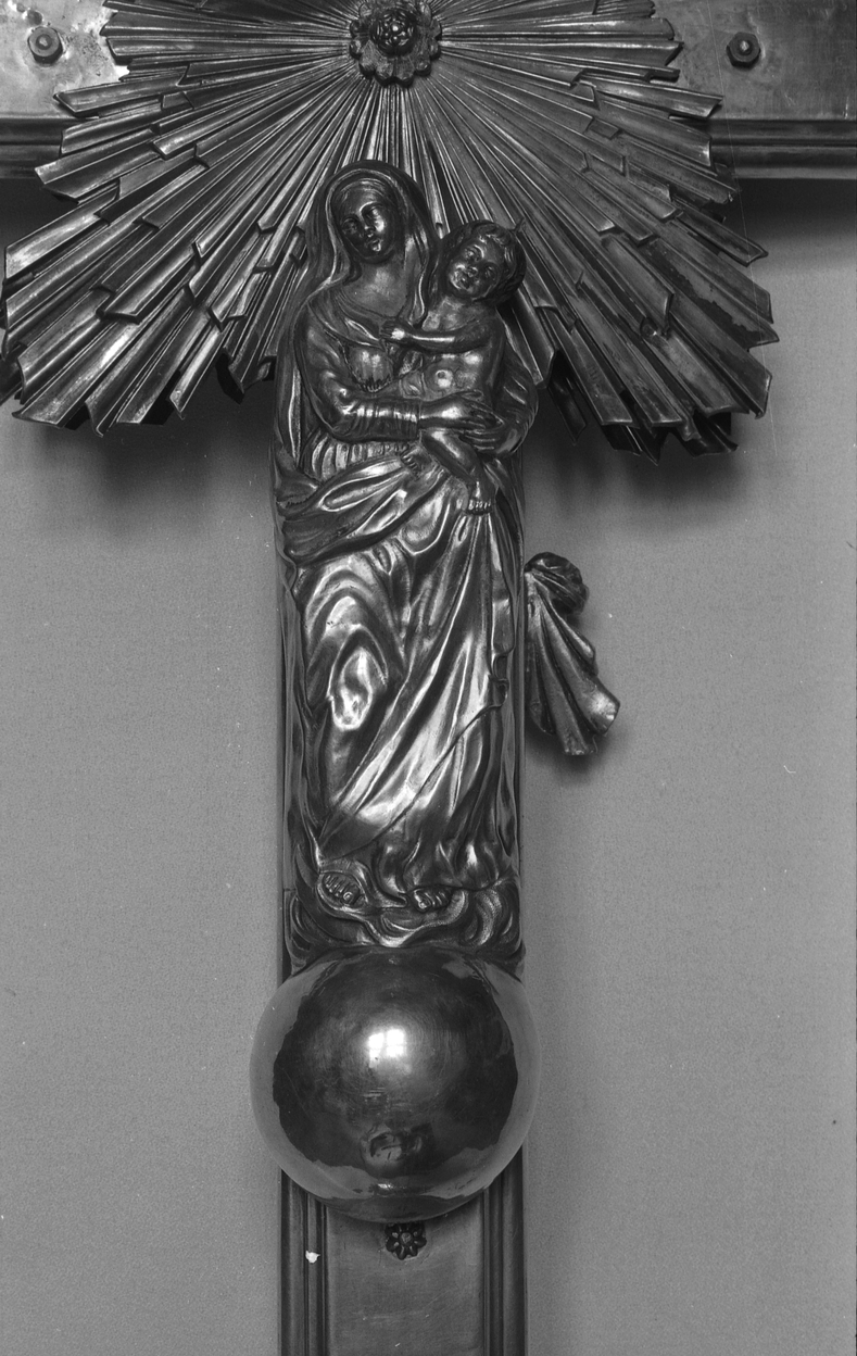 Revers, détail de la Vierge à l'Enfant.Immatriculation