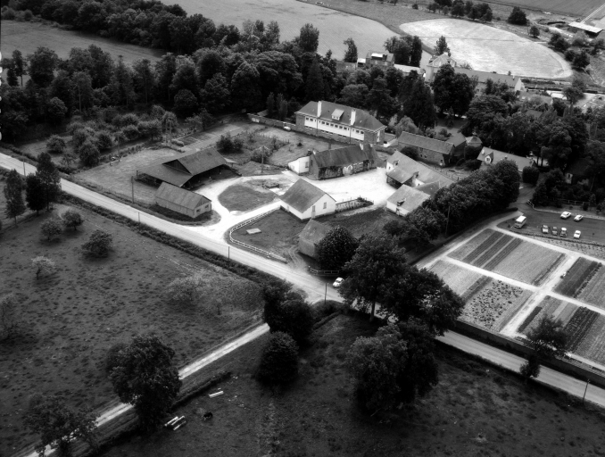 Vue aérienne vers le nord de la ferme.Immatriculation
