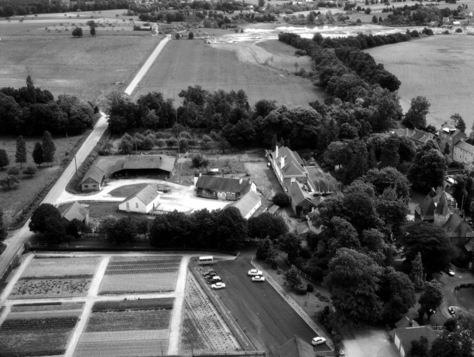 Vue aérienne vers l'ouest de la ferme.Immatriculation