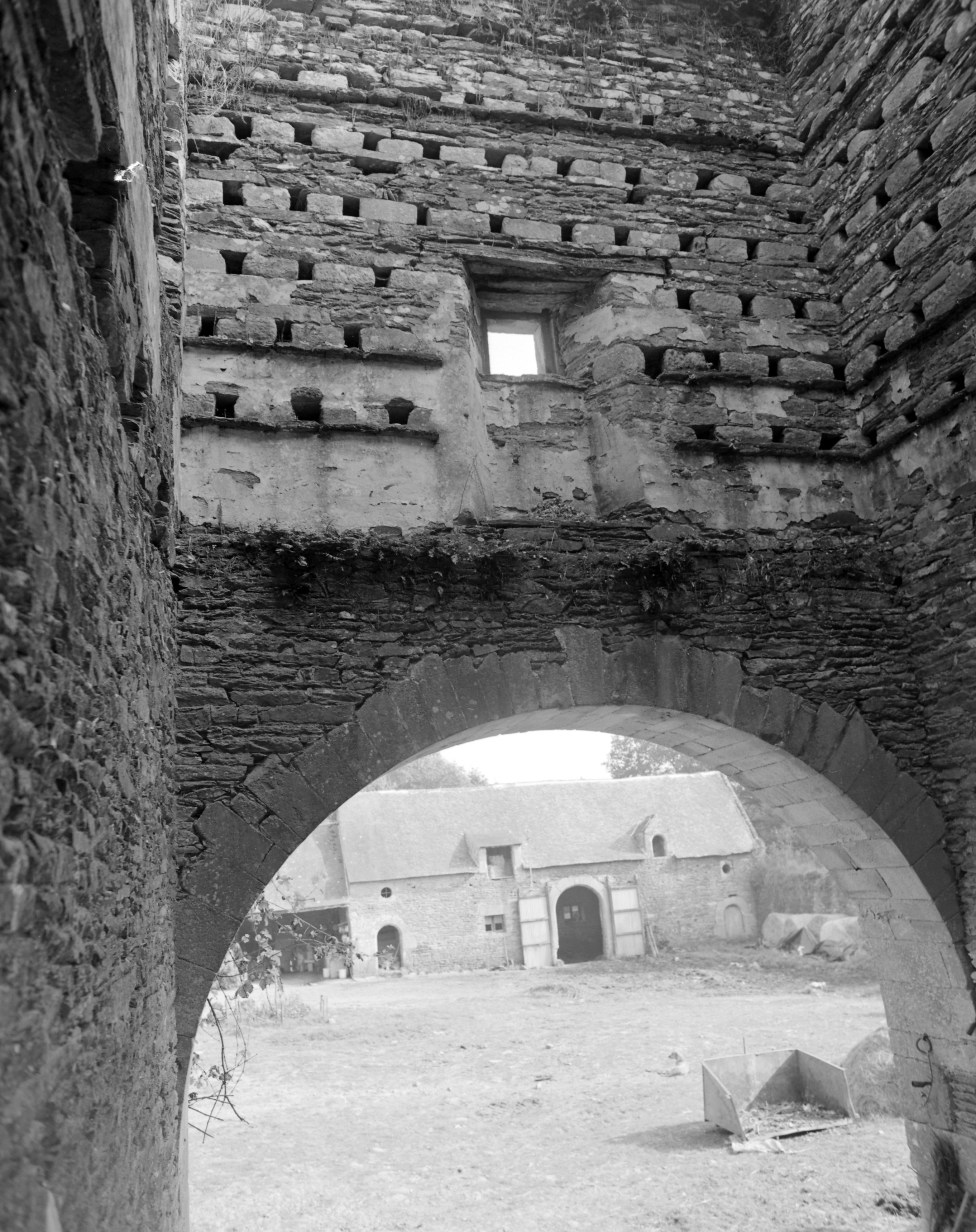 Manoir, aile ouest, corps de passage ouest, intérieur du pigeonnier : les boulins (état en 1984)Immatriculation