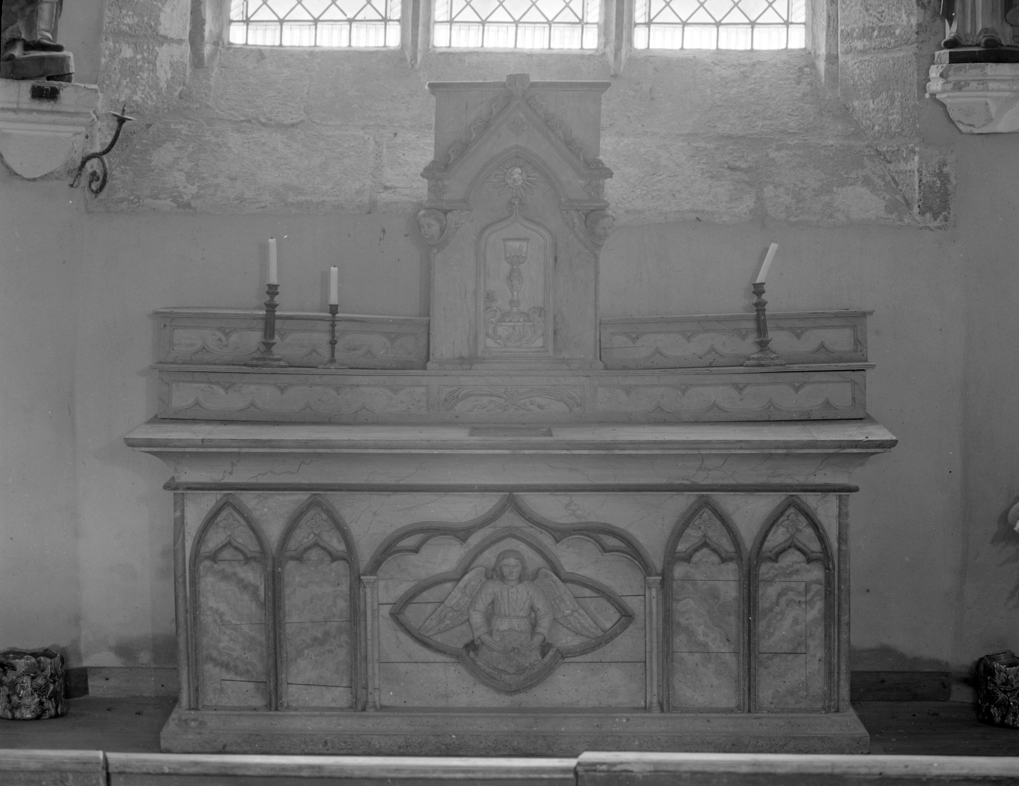 Ensemble de l'autel : autel, 2 gradins d'autel, tabernacle, chapelle Sainte-Suzanne (Sérent),